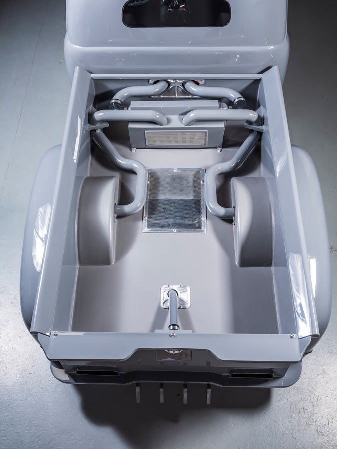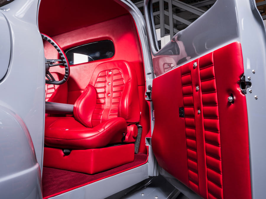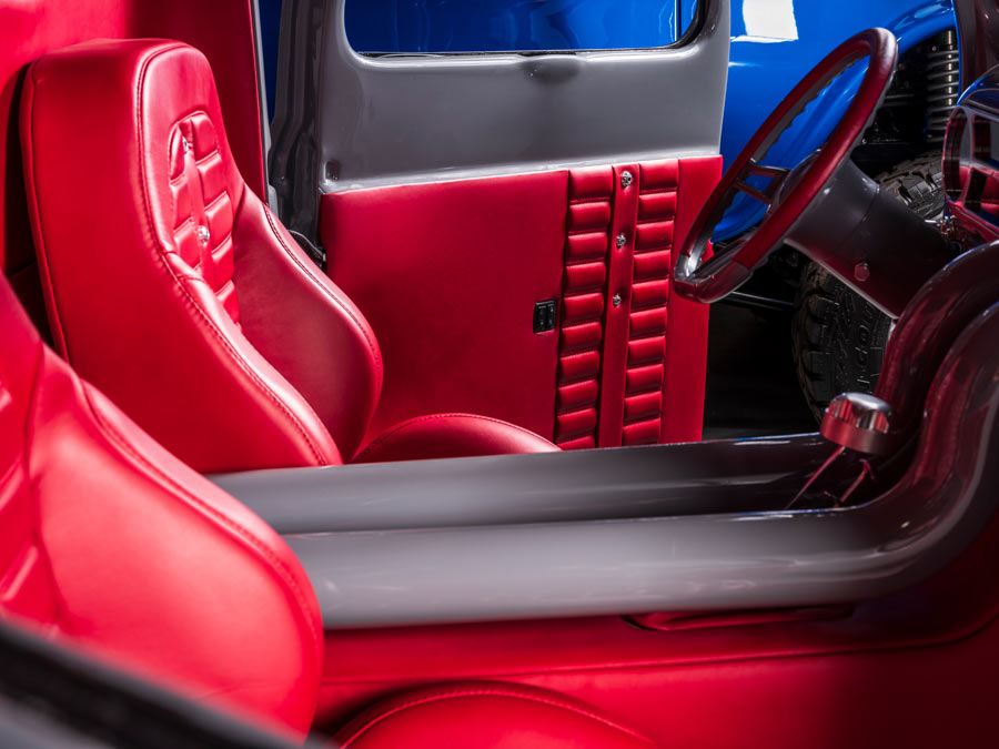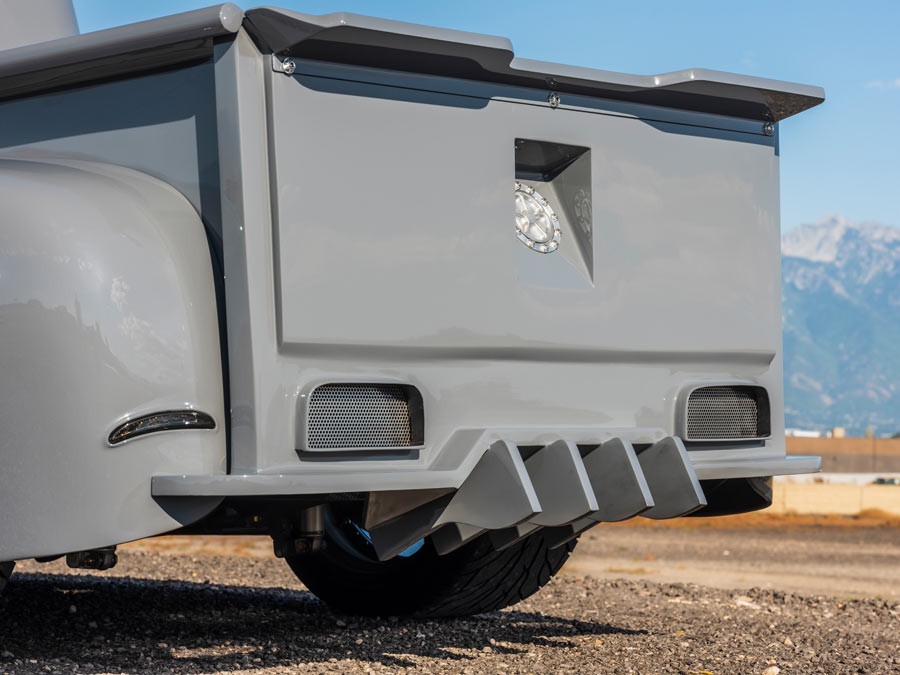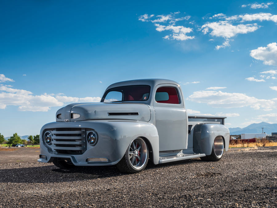 Nicknamed "Friction," this custom F-1 pickup is a radically customized show truck that has been undefeated since its debut. Built by Hot Rod Hall of Fame builder Randy Weaver of Weaver Customs, Friction's long list of accomplishments include ISCA Best Pro-Touring Street Machine Comp, ISCA Utah's Finest, Goodguys Builder's Choice, named Top 5 Truck of SEMA 2019 by Fuelish Media and SEMA Battle of the Builders Finalist 2020. Friction is currently on the cover of F100 Builder's Guide magazine with a feature article in the Winter 2020 issue and was featured by Adam's Polishes, Kimes Ranch Jeans and Hydes Leather in their marketing campaigns for 2020. It's powered by a twin-turbo 4BT 3.9-liter Cummins diesel engine with Flowmaster exhaust backed by a full manual valve body 47RH 4-speed manual transmission and a 9-inch Ford rear end with 3.50 gears. It's equipped with custom independent front suspension and 4-link rear suspension with RideTech adjustable coilovers and rides on custom 20x15 rear and 18x10 front 3-piecewheels wrapped in Mickey Thompson rubber. The truck has been expertly finished in Toc Gray Axalta paint over a custom interior done by JS Custom Interiors featuring Hydes Italian leather with intercooler piping, Dakota Digital gauges and a Kicker audio system. Body modifications include a 1-3/4-inch chop, windshield leaned back 1-3/4 inches, suicide doors, hand-fabricated front and rear valances, custom hood hinges, shaved and smooth body, handcrafted grille, flush-mounted glass, radically modified bed with intercooler and brake cooling ducts, and handmade running boards.