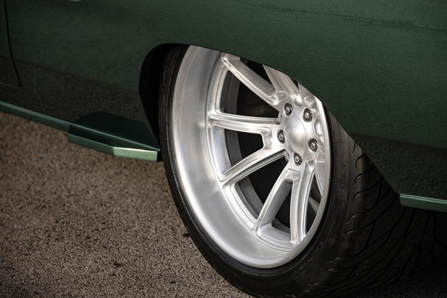 Wheels & Tires: 3 piece 20x15 rear, 18x9 front custom made by Evod wrapped in Mickey Thompson rubber.